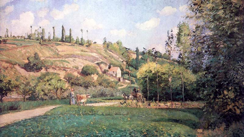 Pissarro’s focus on a farm laborer and her herd reveals his commitment to depicting peasant life with dignity. He integrates figure and landscape in a way that celebrates the quiet beauty of agrarian routines.