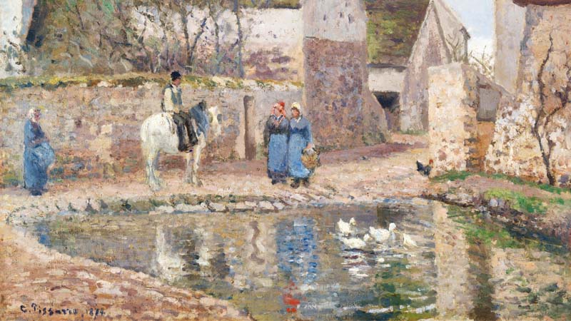 In this tranquil pond scene, Pissarro balances reflections and surrounding foliage to evoke a sense of calm. His brushwork remains lively, animating the water’s surface and merging foreground and background in a gentle, cohesive composition.