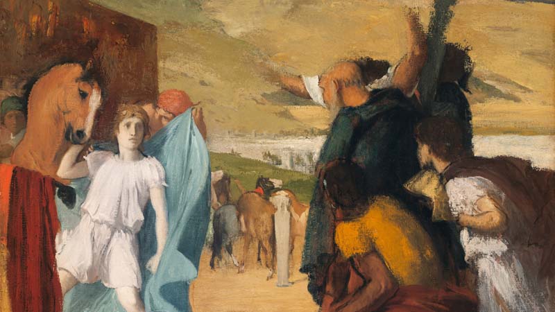 Degas addresses a classical subject with the dynamic energy he typically applied to ballet dancers and horse-racing scenes. He emphasizes equine anatomy and the legendary bond between Alexander the Great and his horse, combining historical content with his trademark realism.