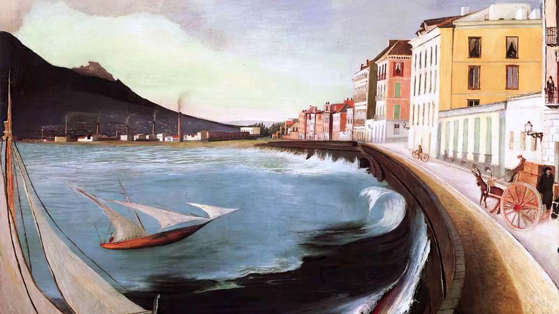 Csontváry Kosztka, a Hungarian painter, traveled extensively. He depicted Castellammare di Stabia in vivid colors and bold shapes, emphasizing Mediterranean light. His style merges post-impressionistic color with a personal, visionary intensity.