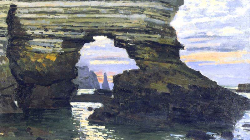 Monet depicts the dramatic Normandy cliffs with rapid, broken brushstrokes and a keen interest in shifting light. His plein air approach defines Impressionism’s dedication to capturing the immediate effects of atmosphere.
