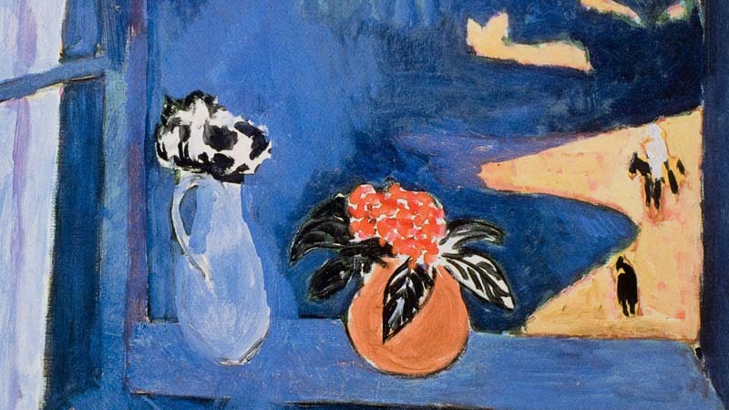 This interior scene showcases Matisse’s fascination with windows as portals between indoor and outdoor worlds. He balances rich blues with contrasting tones, creating a flattened, decorative space. Matisse often used windows to explore depth and color relationships, turning a domestic subject into a vibrant, almost abstract composition.