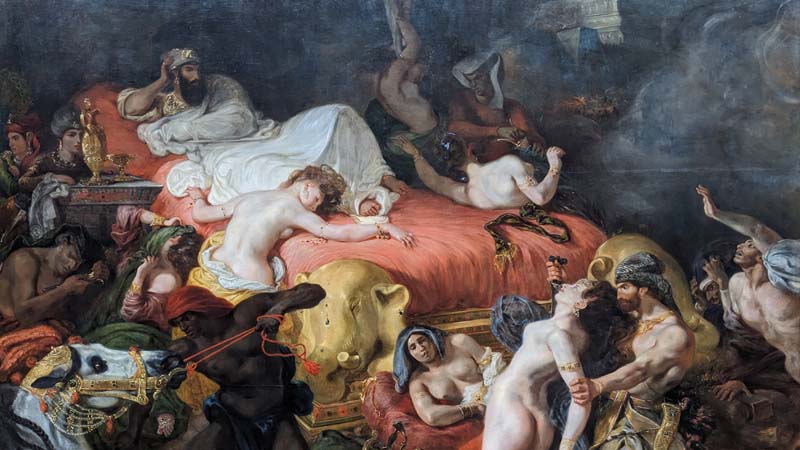 Contact UsThis tumultuous scene depicts the Assyrian king destroying his possessions before his demise. Delacroix’s swirling composition and intense color display the Romantic ethos of passion, chaos, and grandeur.