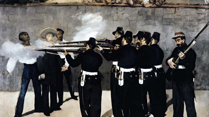 Manet addresses a politically charged event, showing Emperor Maximilian’s firing squad. He draws parallels to Goya’s “The Third of May 1808,” but modernizes the composition. This work challenged censorship in France and underscored Manet’s engagement with current affairs.