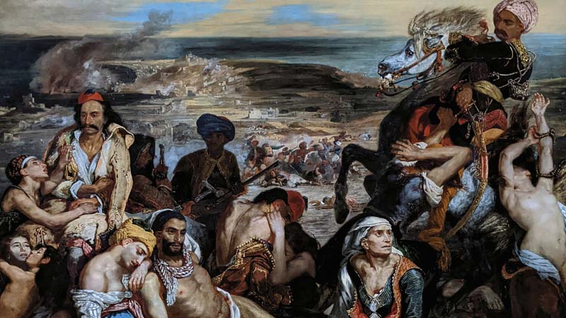 Delacroix depicts a tragic event from the Greek War of Independence, using vivid color and dynamic composition to elicit empathy. This painting signaled the Romantic movement’s shift toward contemporary political themes and raw emotion.
